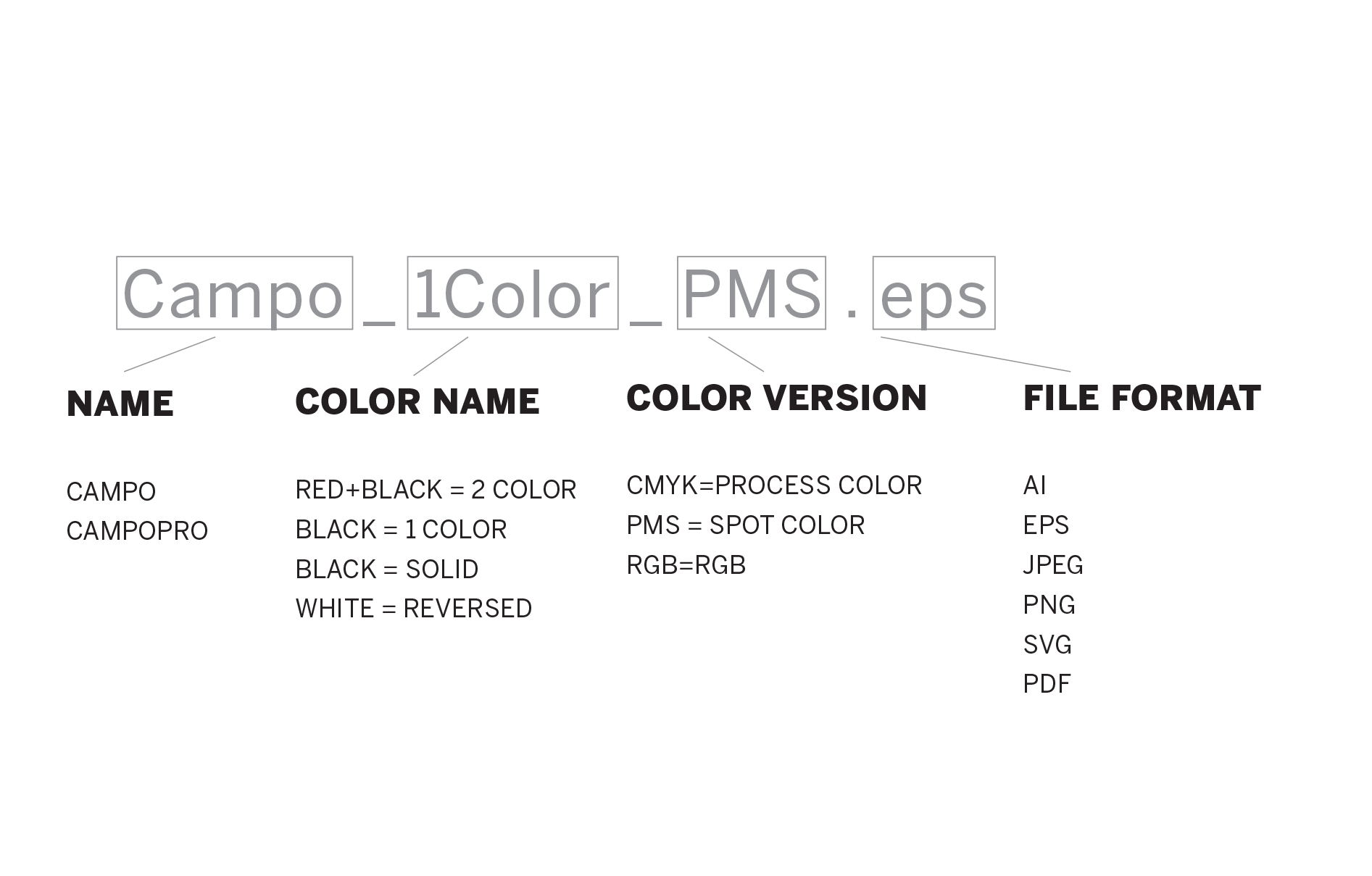 The correct use of the Campo identity is one responsibility we all share. Reproduction artwork is provided for easy use. Before choosing the file format, confirm the final use of the logo.